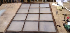 今回は、木製建具の割れてしまったすりガラスの修理を行いました。